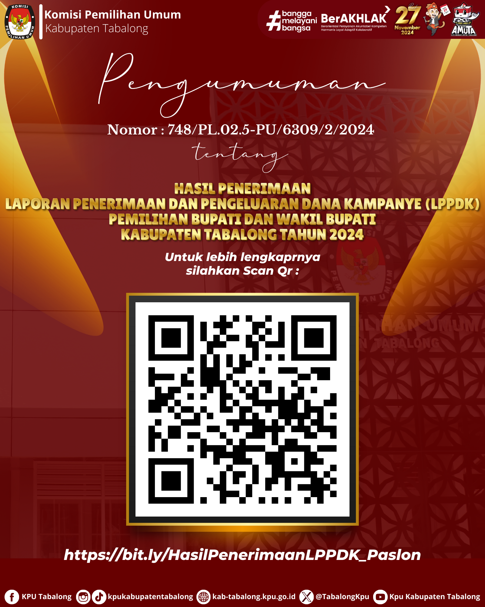 Pengumuman Hasil Penerimaan LPPDK Pemilihan Bupati dan Wakil Bupati Tabalong Tahun 2024