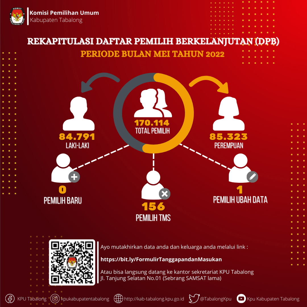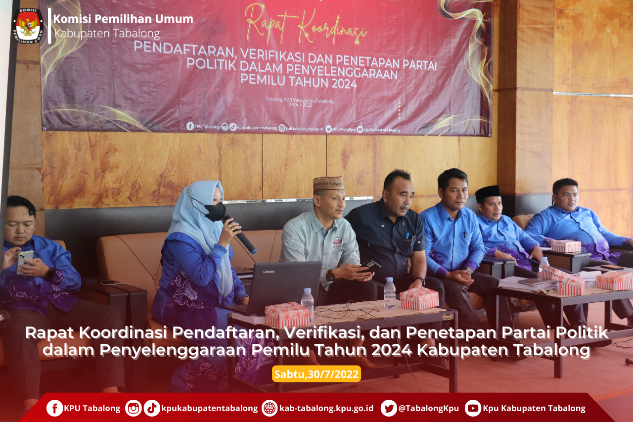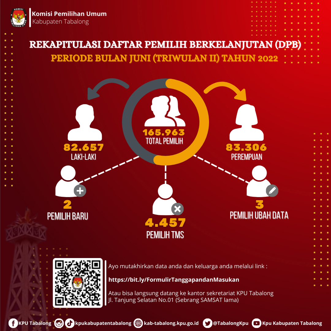 Komisi Pemilihan Umum Kabupaten Tabalong Hari senin Tanggal 27 Juni 2022 bertempat di Gedung Pusat Informasi Tabalong menggelar Rapat Koordinasi Pemutakhiran Data Pemilih Berkelanjutan Periode Bulan Juni Triwulan II tahun 2022. Rapat Koordinasi dihadiri Ketua dan anggota KPU Kabupaten Tabalong seluruh Kasubbag dan staf KPU Kabupaten Tabalong. Rakor Priode Juni Triwulan II tahun 2022 Kali ini juga turut dihadiri Asisten I Sekda Tabalong sebagai Perwakilan Bupati Tabalong, Kepala Dinas serta Kabid PIAK Didukcapil Tabalong, perwakilan Dinas DPMPD, Perwakilan Kejaksaan Negeri Tabalong, Kepala Rutan Tanjung, perwakilan Pengadilan Agama Tabalong, Ketua dan Anggota Bawaslu Kabupaten Tabalong, Perwakilan Polres Tabalong, perwakilan Dandim 1008 Tabalong dan Perwakilan Partai Politik. Dalam sambutannya Ardiansyah S.H.I Ketua KPU Kabupaten Tabalong mengatakan Pemutakhiran Data Pemilih Berkelanjutan ini adalah amanah Undang-Undang Nomor 7 tahun 2017 tentang Pemilihan Umum pasal 20 huruf I yang menyatakan bahwa KPU Kabupaten /Kota mempunyai kewajiban untuk melakukan Pemutakhiran dan memelihara Data Pemilih secara berkelanjutan dengan memperhatikan data kependudukan sesuai perundang-undangan. Kegiatan PDPB adalah kegiatan mengupdate data pemilih dengan 3 Katagori yaitu: 1.Katagori Pemilih Tidak Menuhi Syarat (TMS) seperti Pemilih meninggal dunia,Pindah keluar,Perubahan status dari Sipil menjadi TNI atau Polri dan pemilih yang dicabut hak pilihnya dengan keputusan pengadilan. 2.Katagori Pemilih Baru yaitu Pemilih yang belum terdaftar dalam DPT ,Pemilih Pemula yang baru berusia 17 tahun maupun Para purna tugas TNI atau Polri yang berubah status menjadi warga sipil. 3.Katagori Ubah Data yaitu pemilih yang sudah terdaftar di DPT yang mengalami perubahan elemen data kependudukannya seperti berubah status dari belum kawin menjadi kawin, perubahan alamat domisili dan lainnya. Adapun Pelaksanaan tujuan PDPB adalah: 1.Memelihara,memperbaharui dan mengevaluasi DPT Pemilu/Pemilihan terakhir secara terus menerus dan berkelanjutan yang digunakan untuk penyusunan Daftar Pemilih Tetap pada Pemilu dan Pemilihan tahun 2024 2.Menyediakan Data dan Informasi pemilih bersekala Nasional dan Daerah mengenai data pemilih secara komprehensif,akurat dan mutakhir 3.Memutakhirkan data pemilih dengan menggunakan Teknologi Informasi dengan tetap menjamin kerahasiaan data Adapun kegiatan Rapat Koordinasi PDPB hari ini ,adalah menyampaikan hasil rekapitulasi proses PDPB priode Bulan Juni Triwulan II tahun 2022 untuk diberikan masukan dan saran dalam rangka perbaikan Pemutakhiran data pemilih Priode berikutnya Di bulan juni ini sekaligus triwulan II kpu Tabalong merekapitulasi Data pemilih berkelanjutan dengan laki-laki 82.657 dan perempuan 83.306 dengan TMS sebanyak 4.457 dengan rincian meninggal dan terkonfirmasi ganda sebagai TL dari surat KPU RI No. 17 tanggal 13 Juni 2022 tentang Tindak Lanjut Hasil Pemadanan Data DPB Semester II thn 2021 dengan data Kemendagri ,dengan TPS Bulan berjalan 621 dan Jumlah pemilih bulan berjalan 165.963. Bagi warga Tabalong ayo mutakhirkan data anda dan keluarga anda melalui link : https://bit.ly/FormulirTanggapandanMasukan Atau bisa download Aplikasi LindungiHakmu di Playstore.